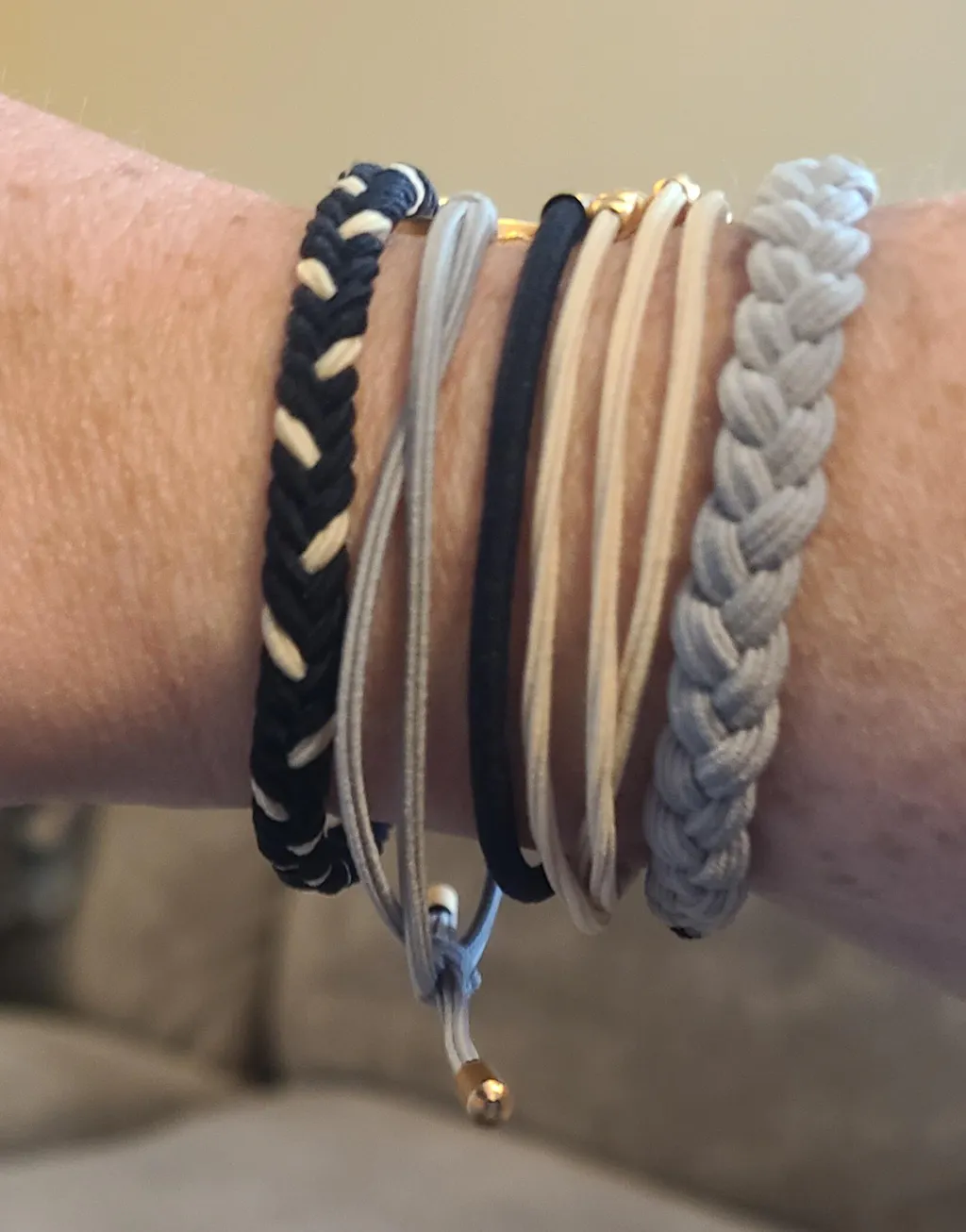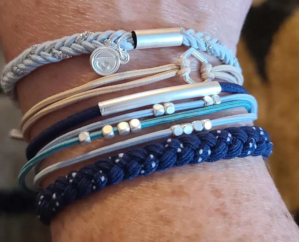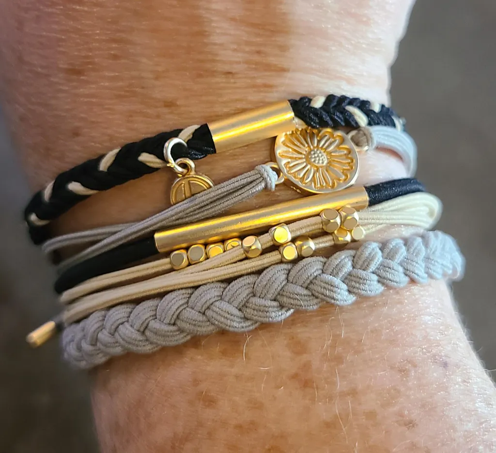 Our Dream set includes five bracelets that doubles as hair ties in soothing neutral and blue tones with just a hint of shimmery silver. Everything about this set says breathe deep and dream big!